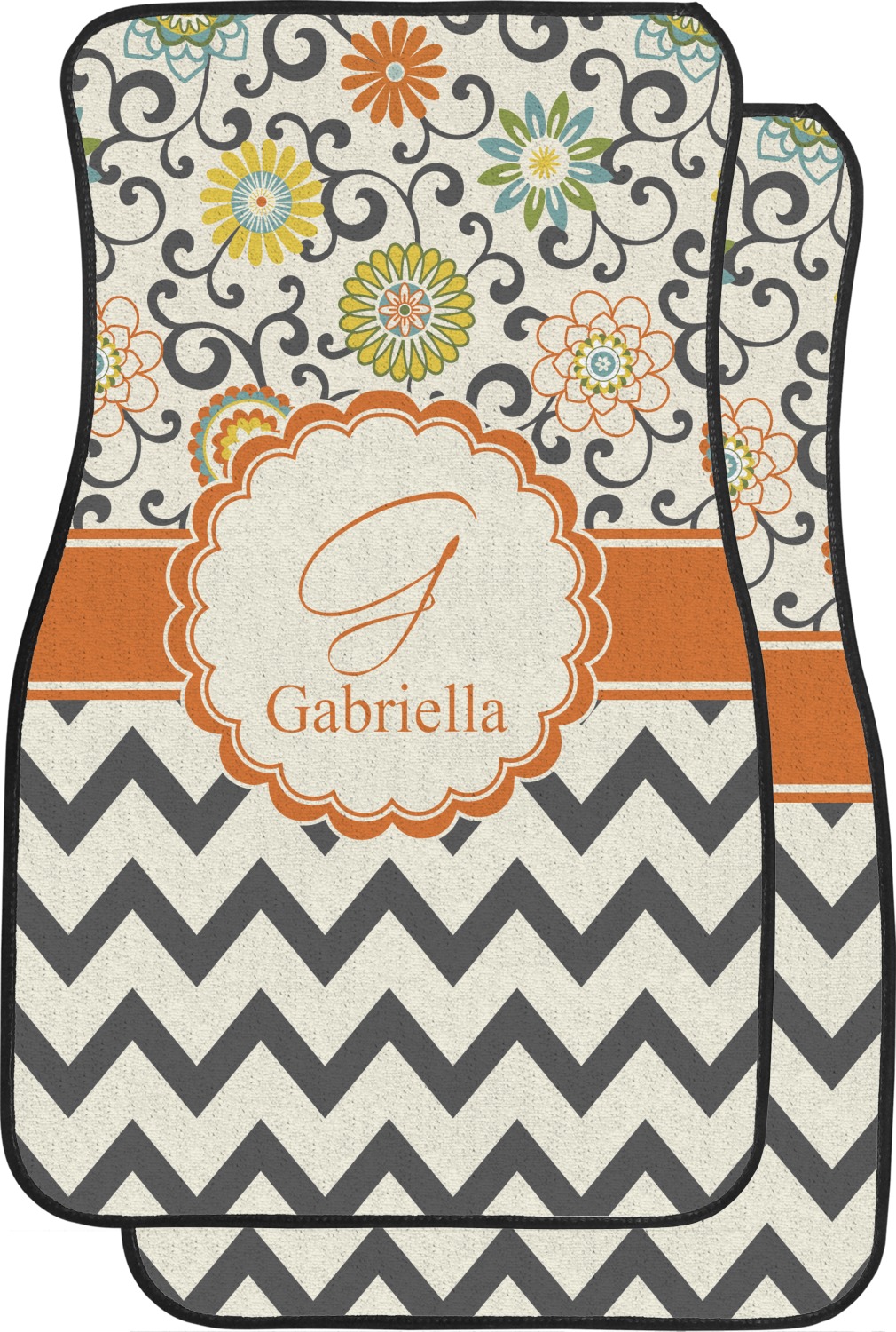 Swirls Floral Chevron Car Floor Mats Personalized