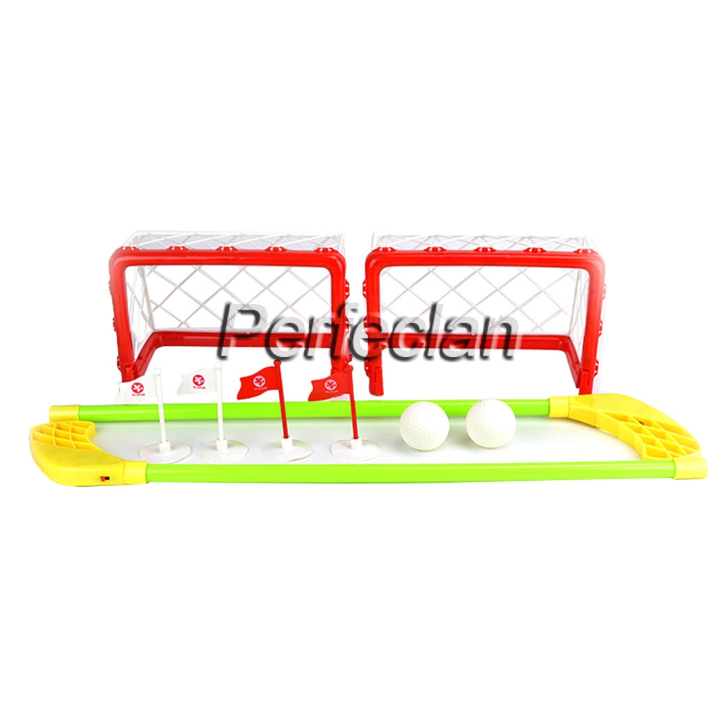 Mini Hockey Goal Set 2 Nets 2 Sticks 2 Balls Children Indoor
