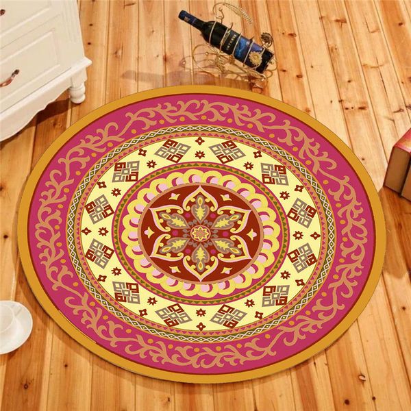 Round Rug Carpet Geometric Print Carpets Anti Slip Kitchen Floor